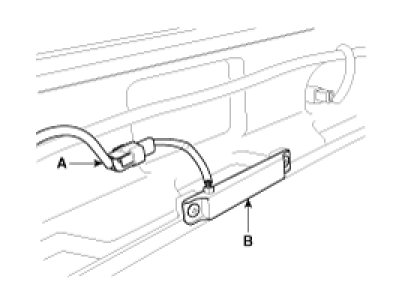3. Disconnect the interior 2 antenna connector(B) located at the console rear side, then remove the interior 2 antenna(A) after loosening nuts (2EA).