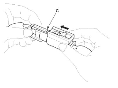 Hold both connector halves and press firmly until the projection(C) of the sleeve-side connector clicks to lock.