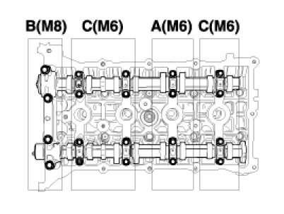 Tightening torque 32.4 - 36.3 Nm (3.3 - 3.7 kgf.m, 23.9 - 26.8 lb-ft) + (90 - 95°) + (90 - 95°)
