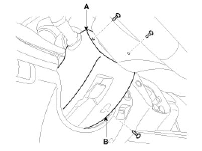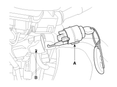1. Disconnect the ignition switch connector(B) and key warning switch connector(A) from under the steering column.