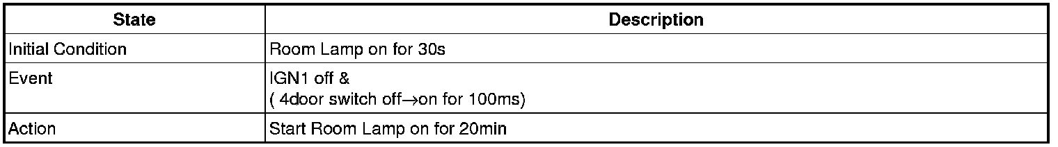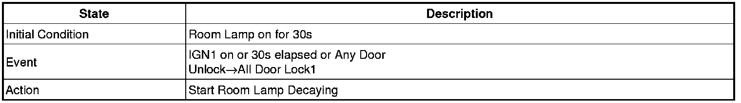 - 4 Door in closed IGN1 off & (Key in -> Key out): 30-second delay will be lights out.
