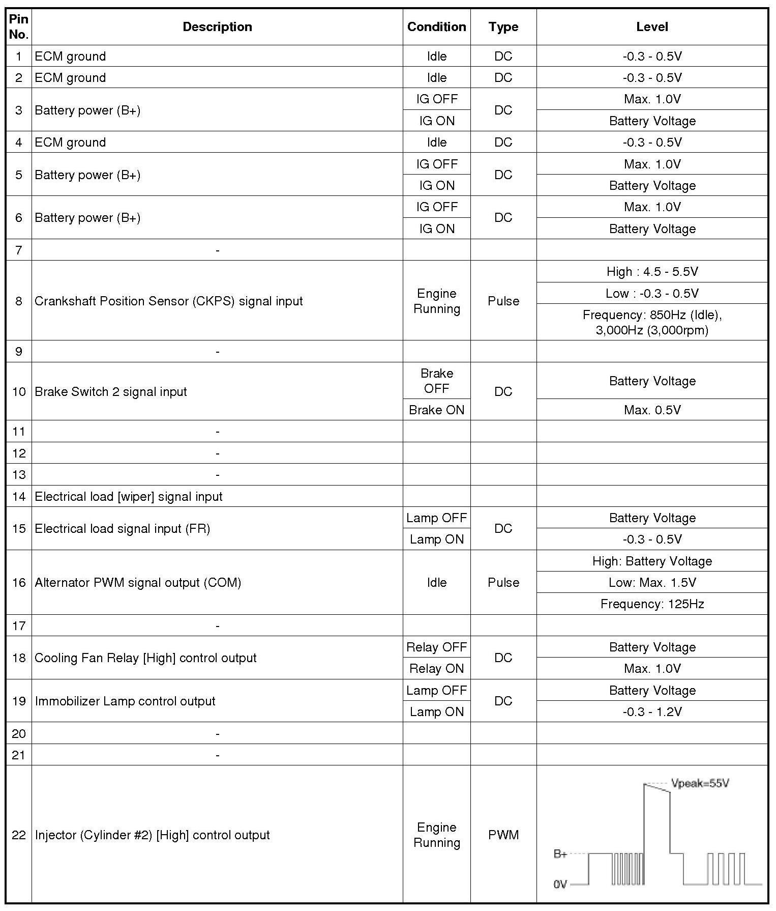 ECM Terminal And Input/Output signal