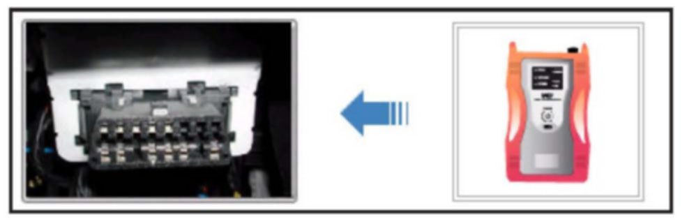 4. Connect the Main 16-pin DLC cable (GHDM - 241000) between the VCI and the OBD-II connector, located under the driver's side of the instrument panel.