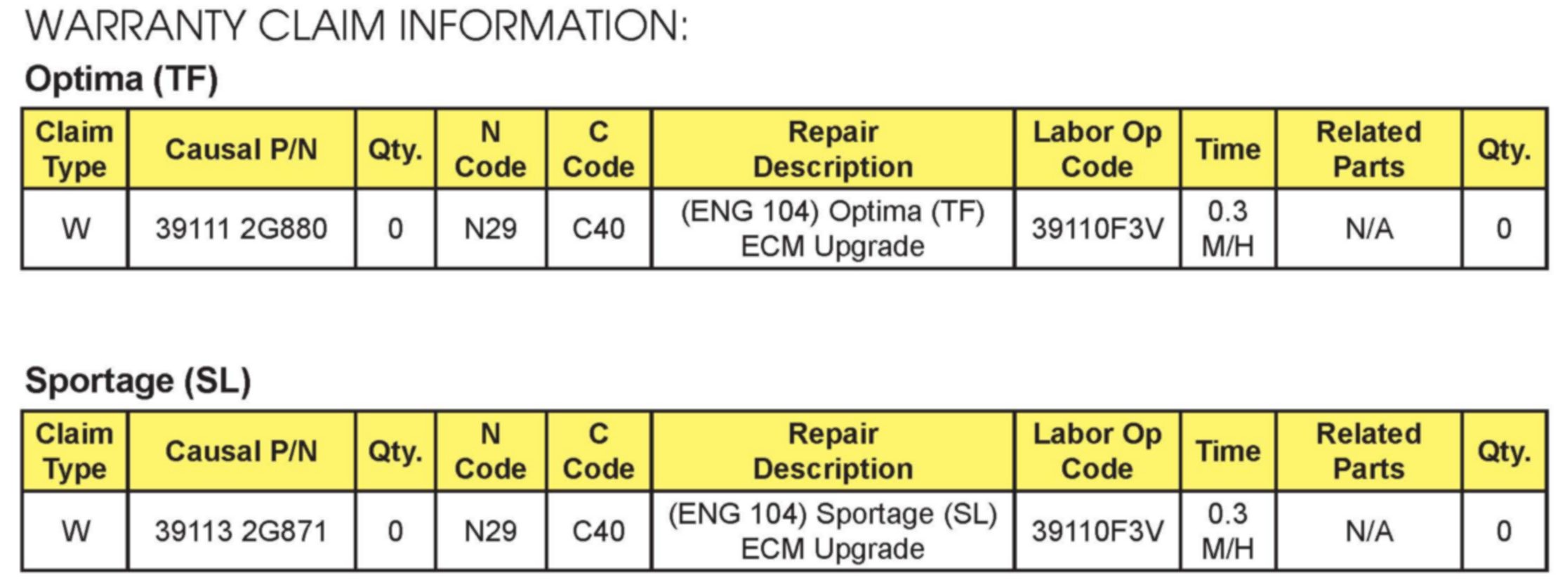 MODEL: Optima (TF)/Spotage (SL) 2011-12MY