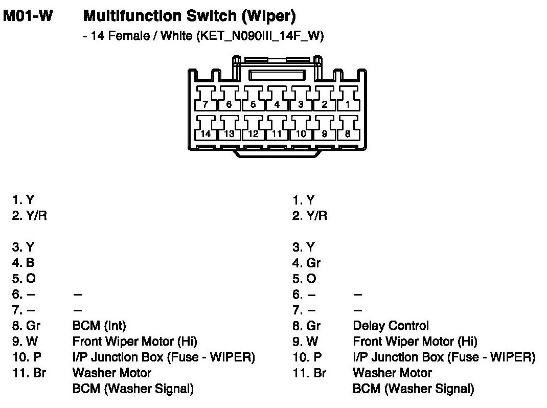 M01-W Multifunction Switch (Wiper):