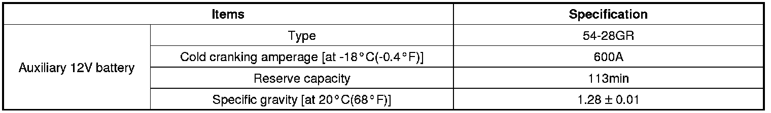 Home >> Kia >> 2012 >> Optima L4-2.4L Hybrid >> Repair and Diagnosis >> Specifications >> Electrical Specifications >> Starting and Charging >> System Specifications