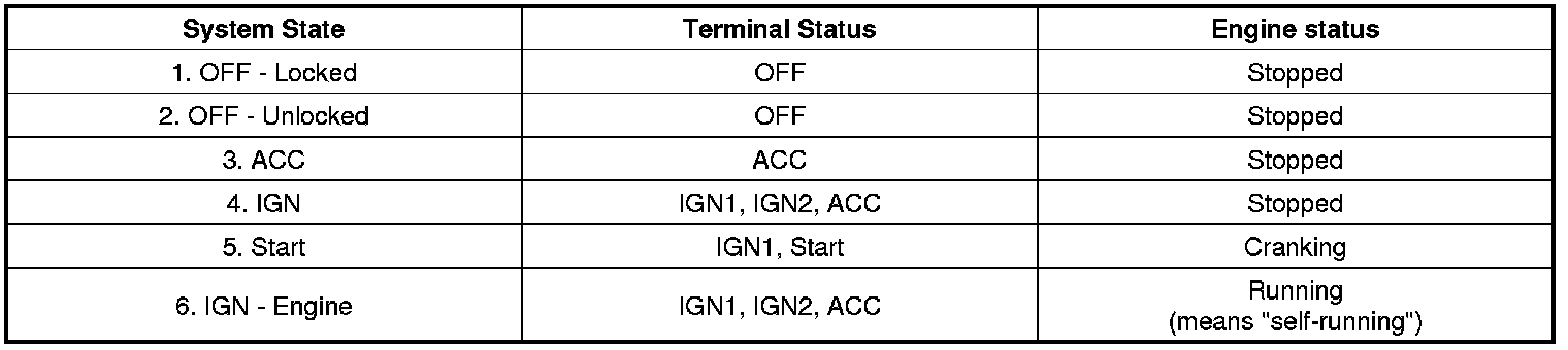 Referring to the terminals, the system states described in the table above are same as those one found in a system based on a mechanical ignition switch.