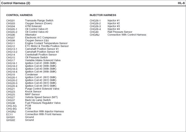 Control Harness Index:
