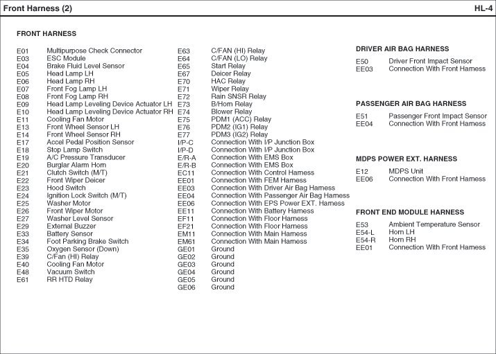 Front Harness Index: