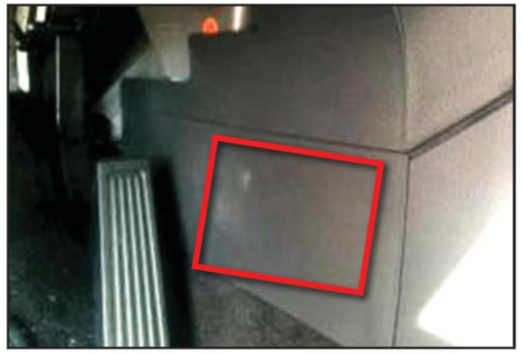 3. Remove interior trim panels indicated in photo to access floor wiring harness.