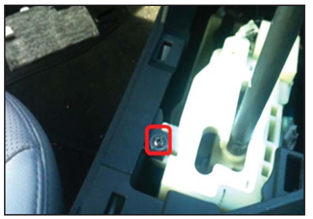 7. Remove screw attaching the center console to gear shifter.