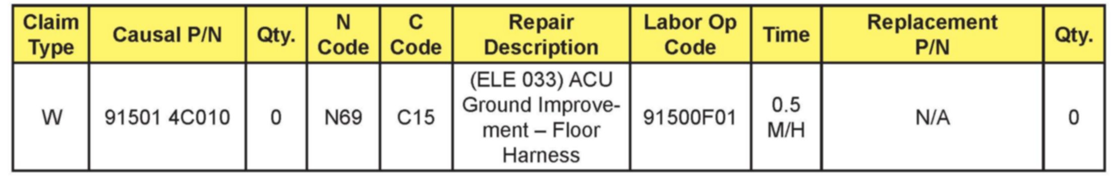 AFFECTED VEHICLE PRODUCTION RANGE