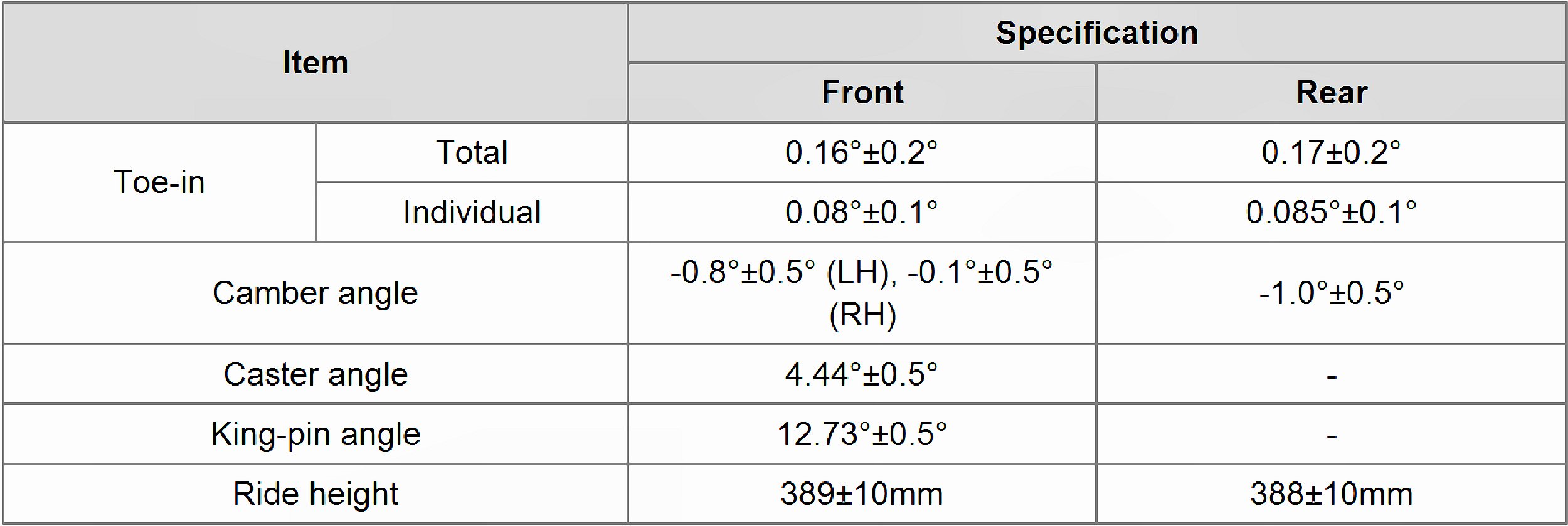 Wheel Alignment Specifications