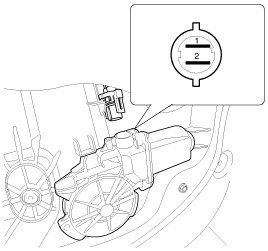 3. Connect the motor terminals directly to battery voltage (12V) and check that the motor operates smoothly. Next, reverse the polarity and check that the motor operates smoothly in the reverse direction. If the operation is abnormal, replace the motor.