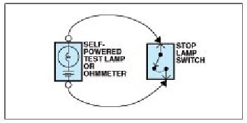 An ohmmeter can be used in place of a self-powered test lamp.