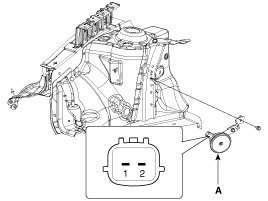 1. Remove the burglar horn (A) after removing 1 bolt and disconnect the 2P connector from the burglar horn.