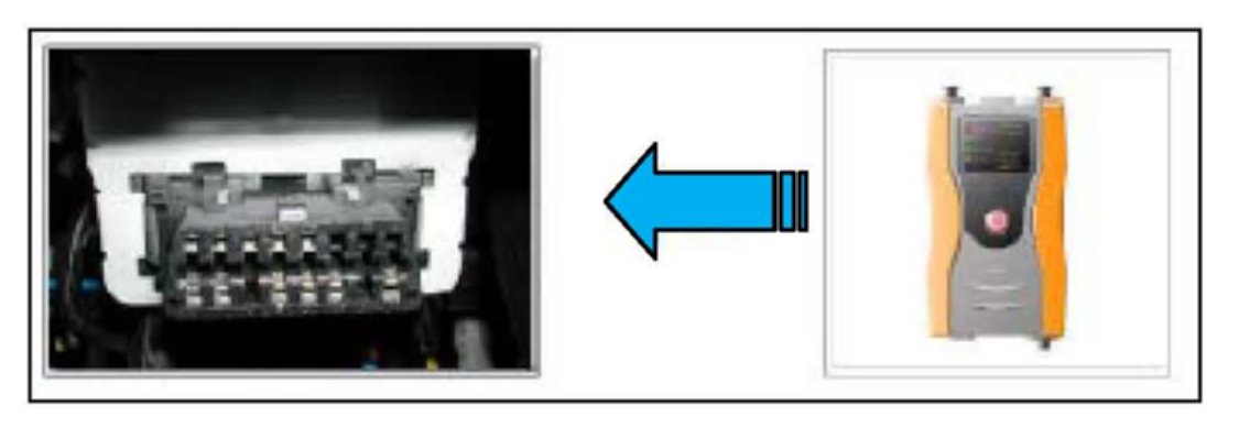 4. Connect the Main 16-pin DLC cable (GHDM - 241000) to the OBD-II connector located under the driver's side of the instrument panel.