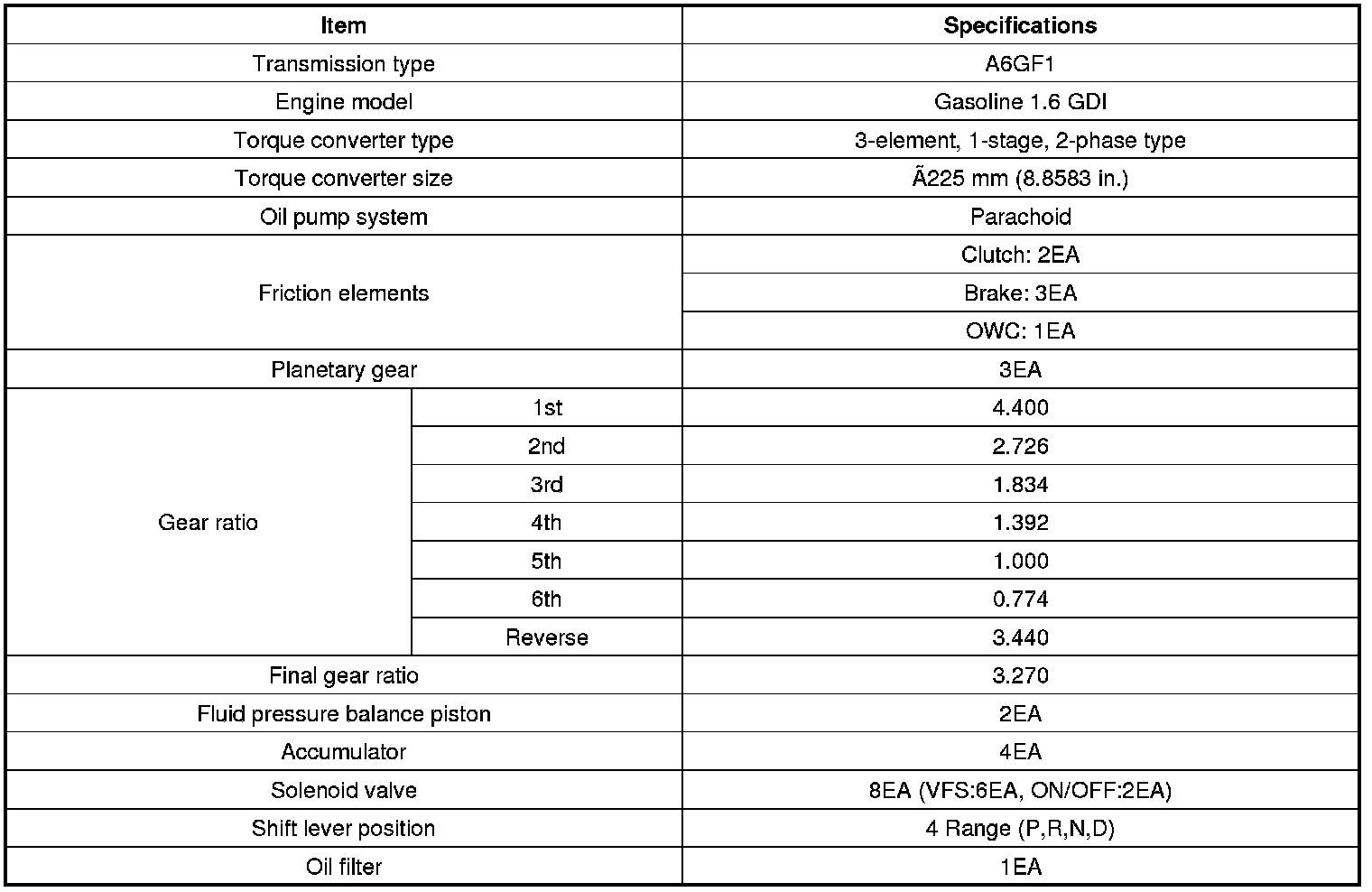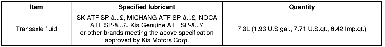 Home >> Kia >> 2012 >> Rio L4-1.6L >> Repair and Diagnosis >> Specifications >> Mechanical Specifications >> Automatic Transmission/Transaxle >> System Specifications