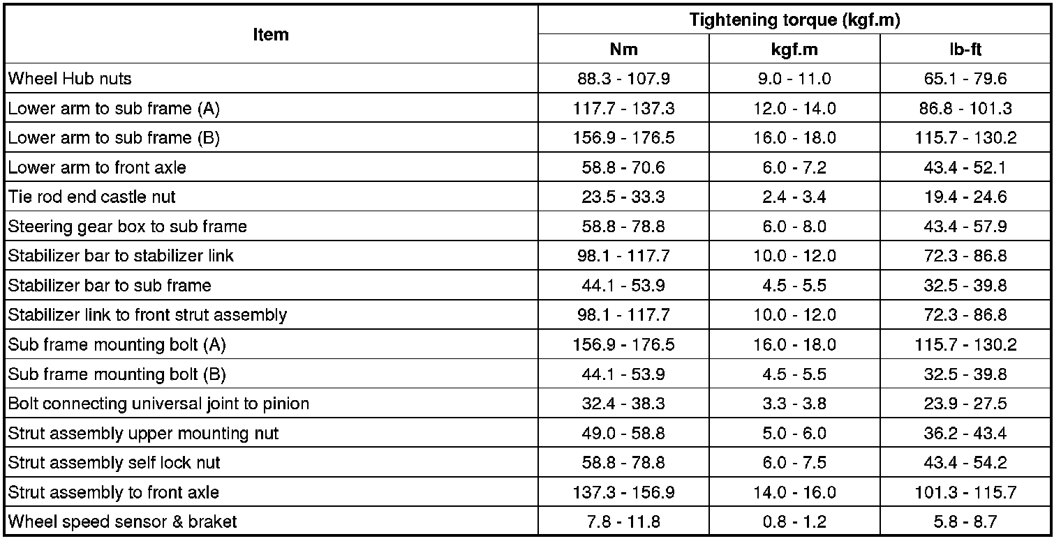 Tightening Torques