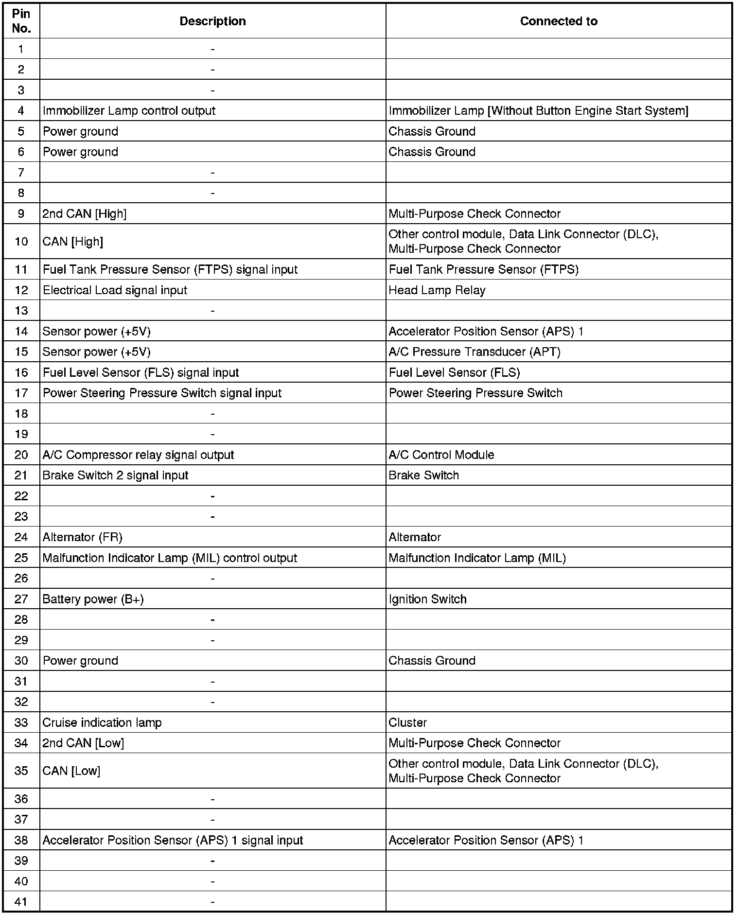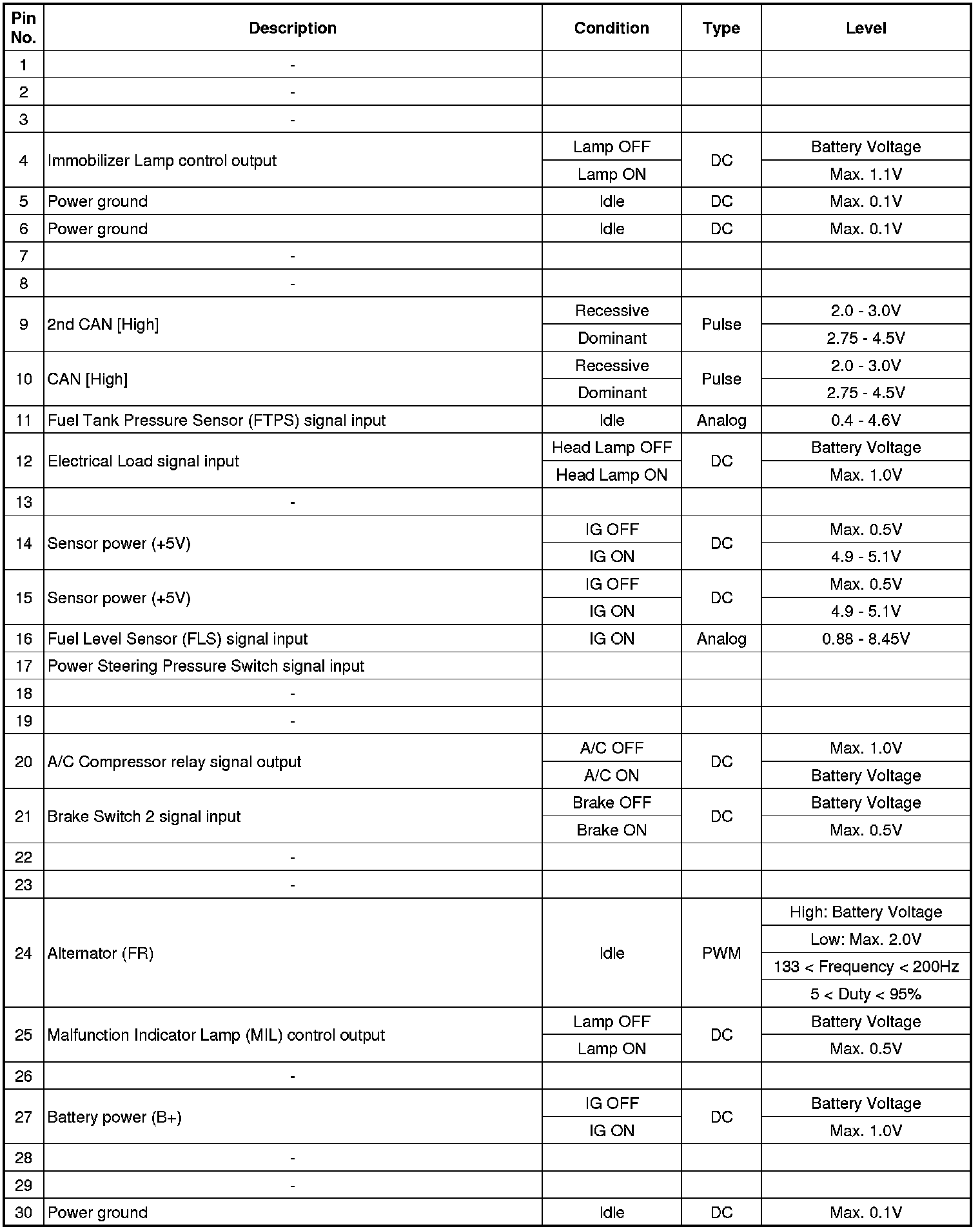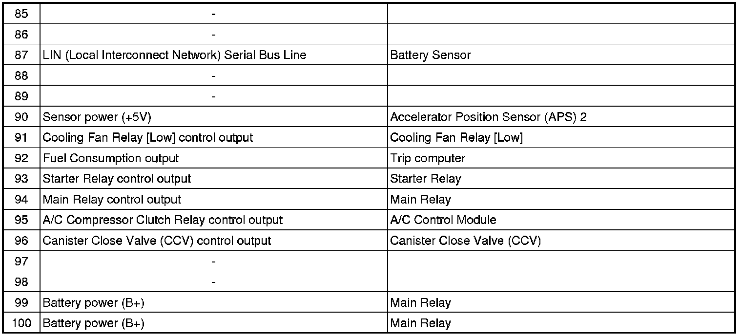 ECM Terminal Input/Output Signal