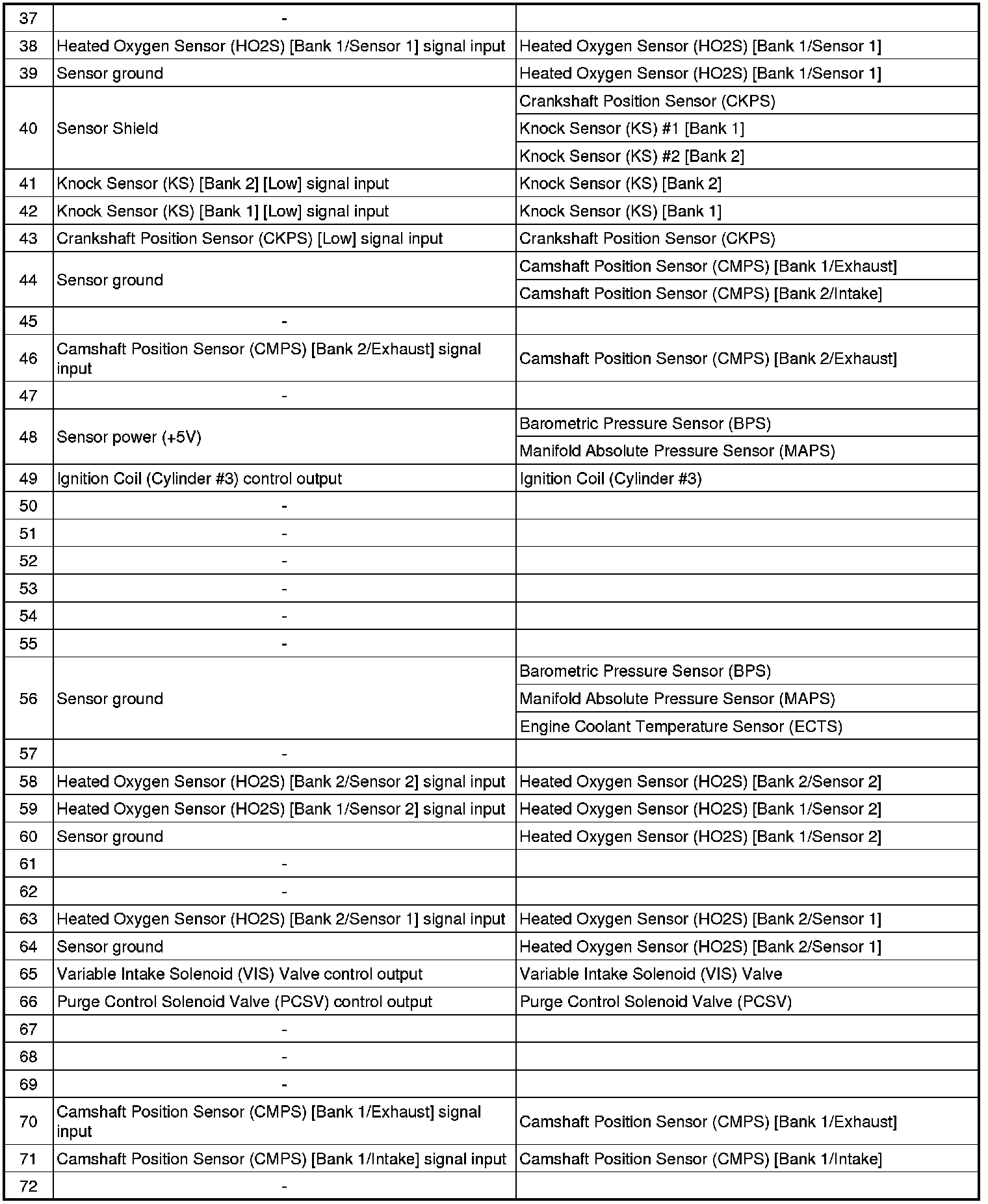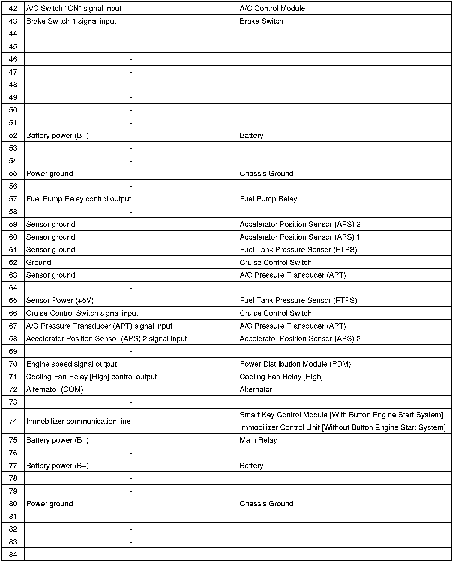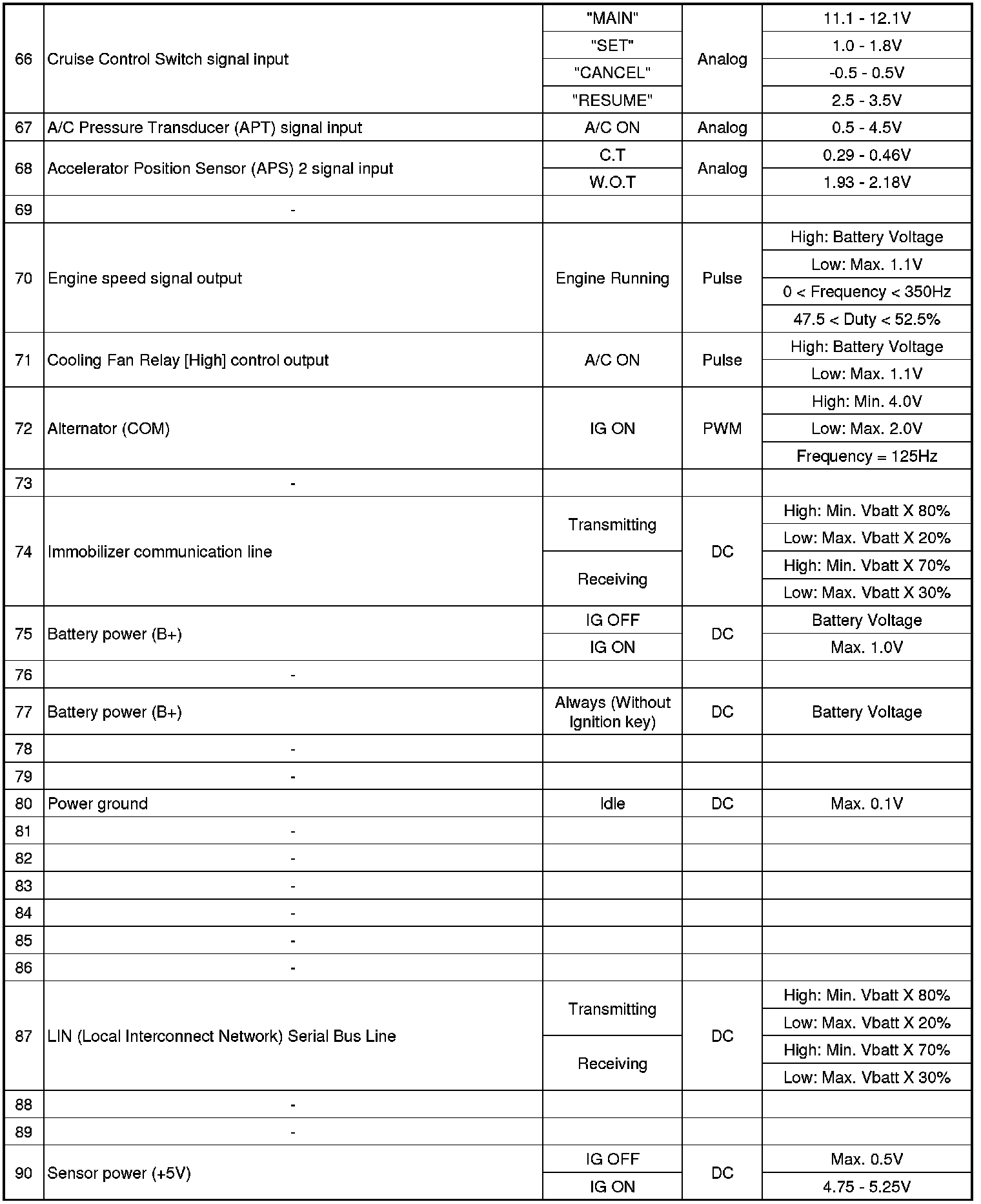 ECM Terminal Input/Output Signal