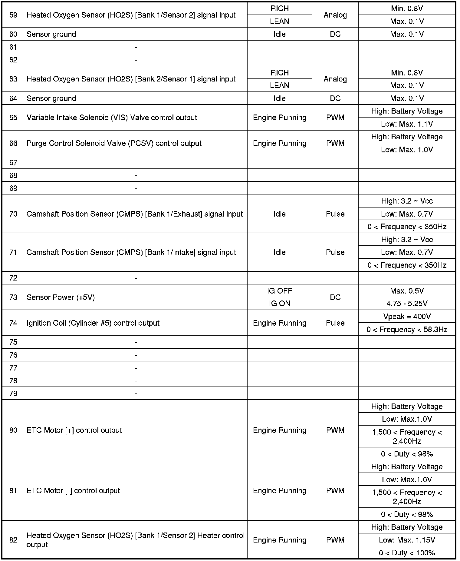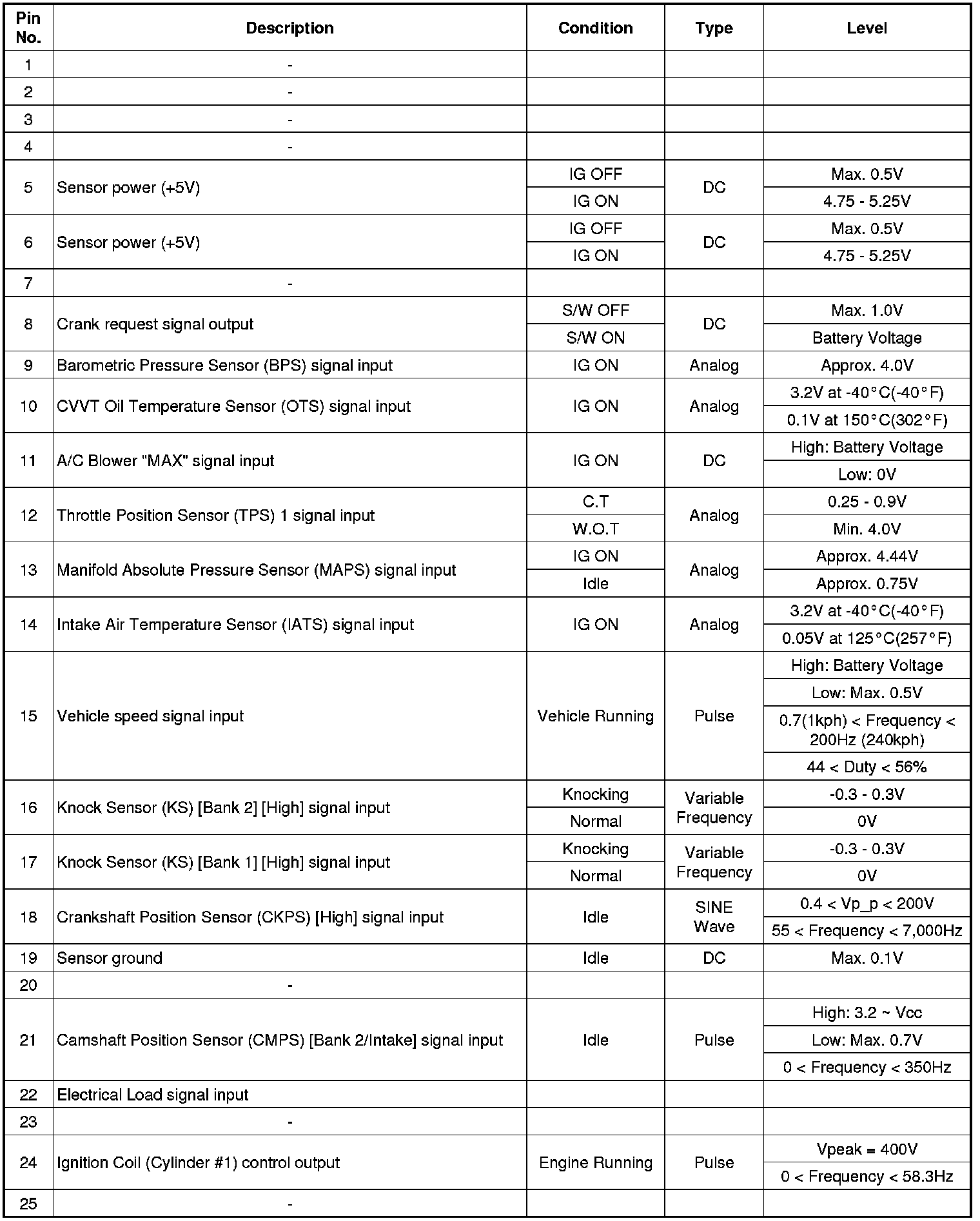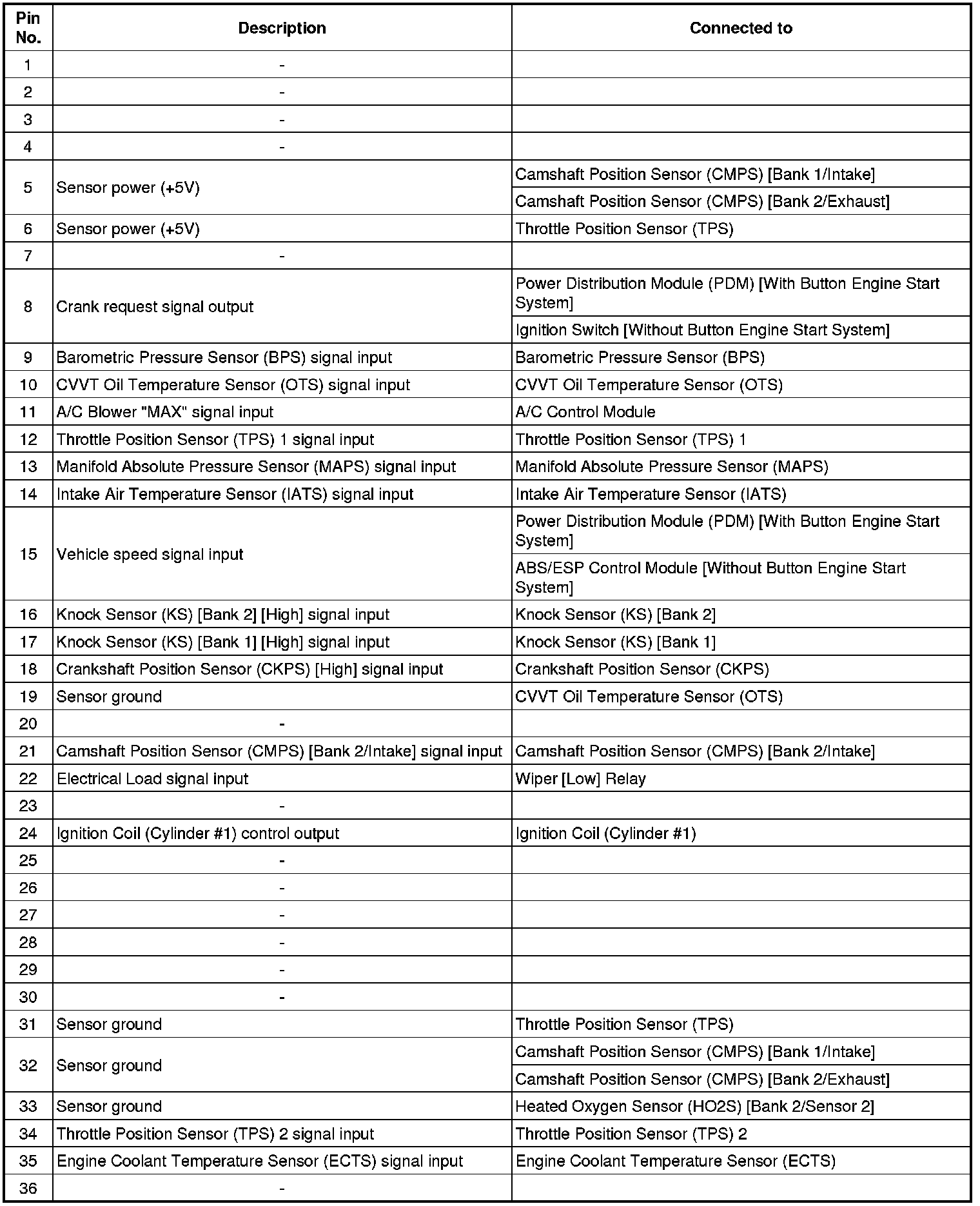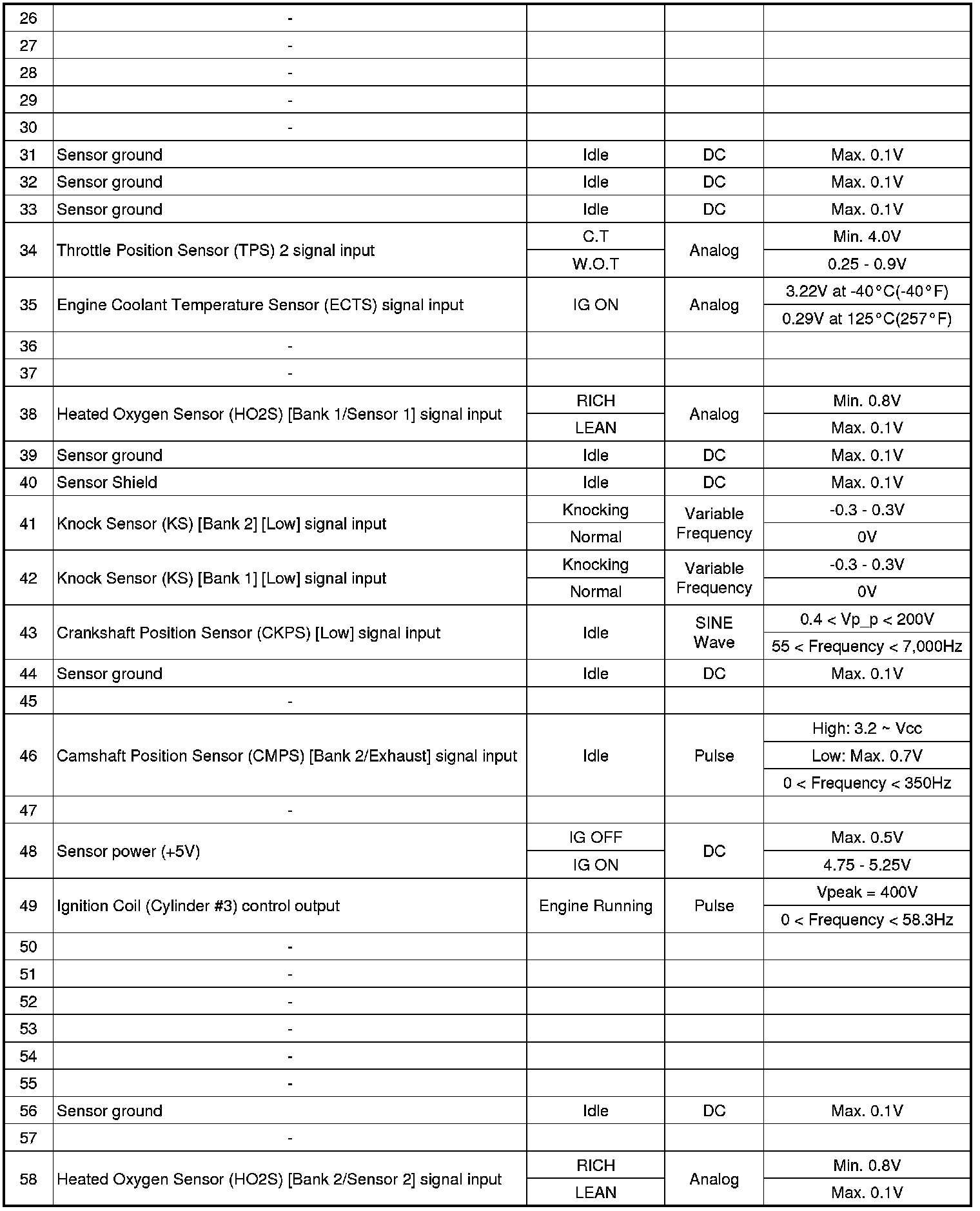 ECM Terminal And Input/Output signal