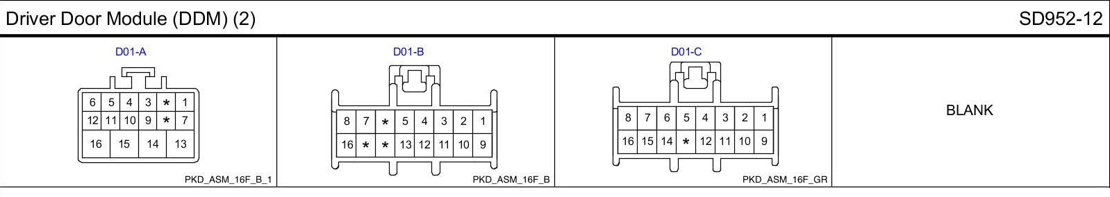 Driver Door Module (DDM) (2) Connector Pin Outs: