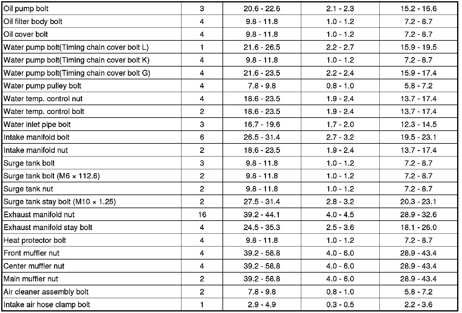 Tightening Torques
