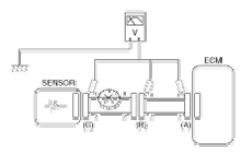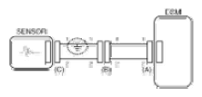 - With each connector still connected, measure the voltage between the chassis ground and terminal 1 of each connectors (A), (B) and (C) as shown in [Fig 4].