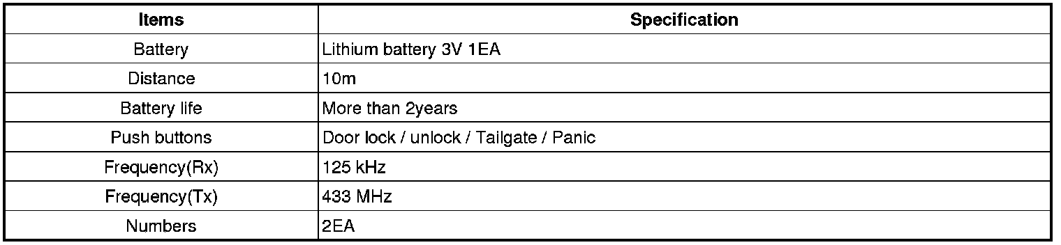Keyless Starting System: Specifications
