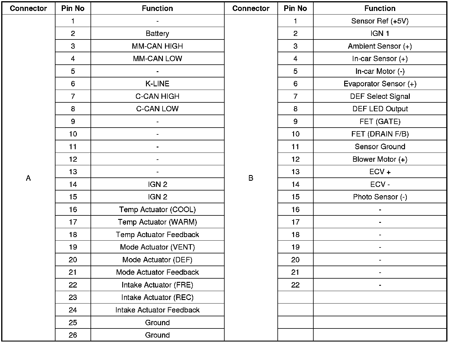 Connector Pin Function