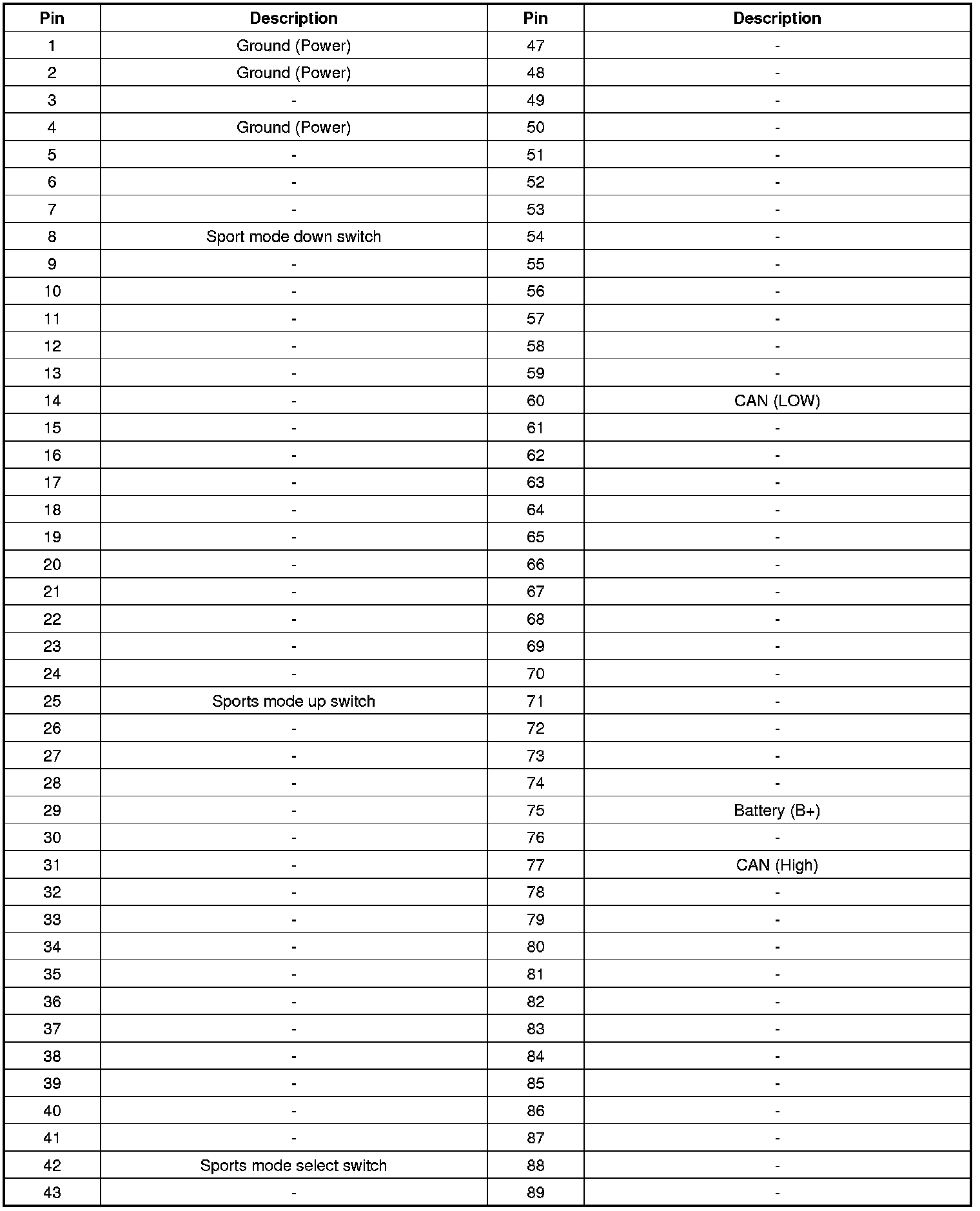 Connector and Terminal Function