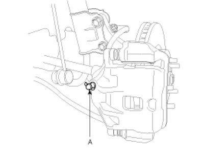 3. Loosen the right-rear brake bleed screw (A) to allow air to escape from the system. Then tighten the bleed screw securely.