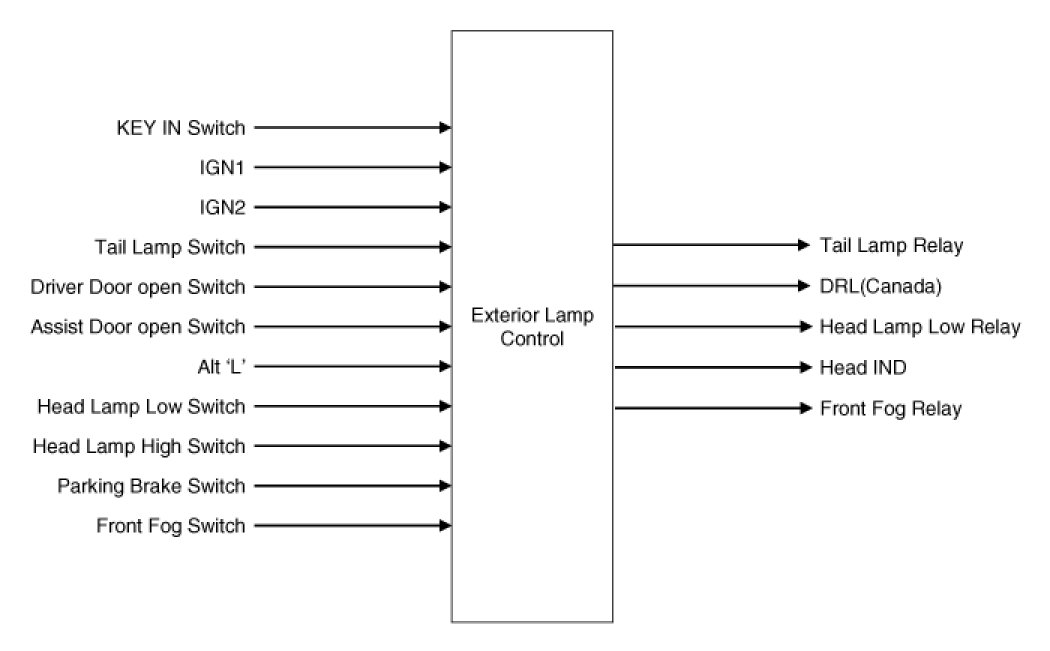 (2) Also, Tail Lamp Relay OFF(automatic blackout) even though IGN KEY is turned OFF after opening Driver Door open switch at the condition that IGN KEY is ON.
