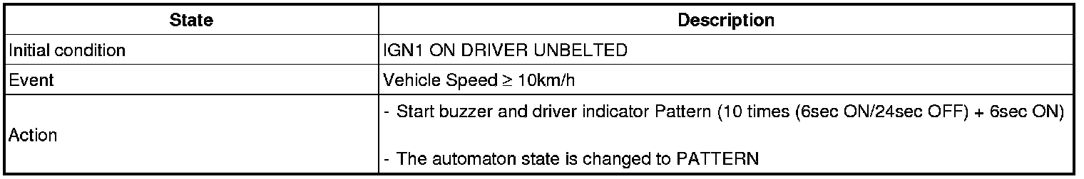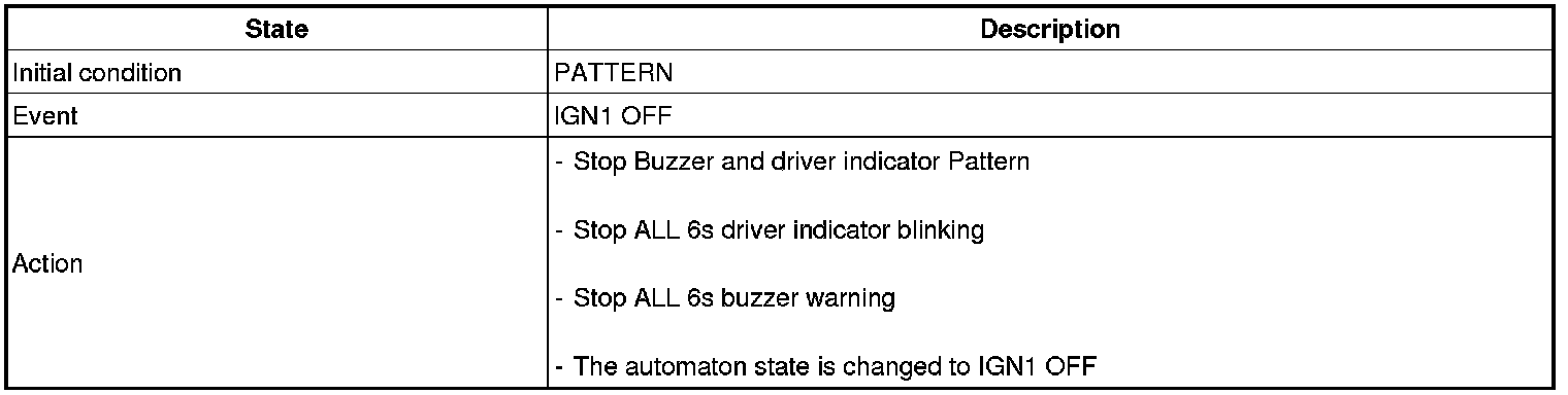 (1) When Driver Door Switch is ON at the status of KEY IN ON, Buzzer will be outputted per 0.6sec continuously.