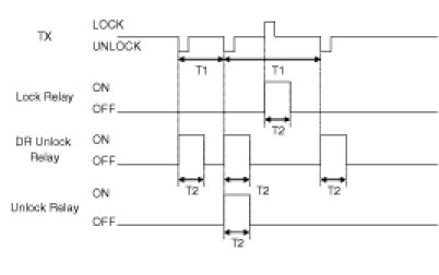 (3) Turn Driver Unlock Relay output ON during T2 when receiving TX UNLOCK signal. However, turn Driver Unlock Relay, Unlock Relay (Central Unlock) output during T2 if TX UNLOCK is received within T1.