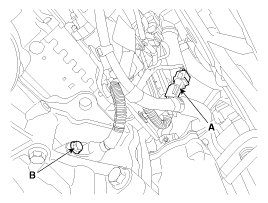 2. Disconnect the crankshaft position sensor connector (A) and remove the sensor after removing the installation bolt (B).