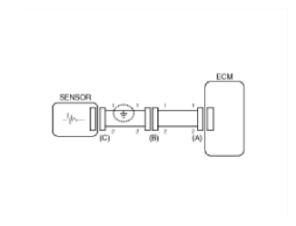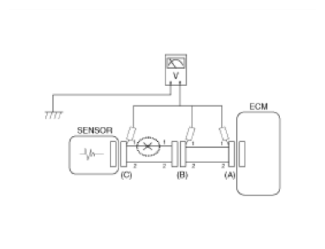 - With each connector still connected, measure the voltage between the chassis ground and terminal 1 of each connectors (A), (B) and (C) as shown in Fig 4.