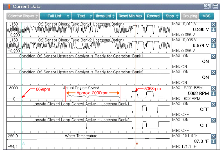 Fig 1: Screen Display - Signal Waveform In Current Data At Engine Idle After Warm Up (Approx 2000rpm And 5000rpm)