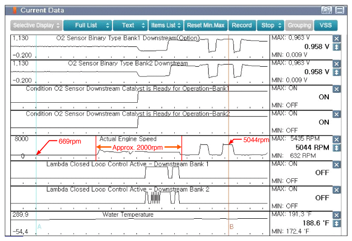 Home >> Kia >> 2015 >> Sedona EX >> Repair and Diagnosis >> Engine Performance >> System >> Engine Control System Diagnosis (1 Of 4) >> DTC P0140: O2 Sensor Circuit No Activity Detected (Bank 1/Sensor 2) >> DTC Inspection >> Monitor GDS Data