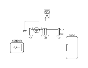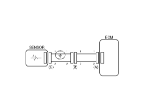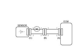 - With each connector still connected, measure the voltage between the chassis ground and terminal 1 of each connectors (A), (B) and (C) as shown in [Fig 4].