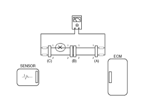 - Disconnect connectors (A), (C) and measure resistance between connector (A) and (C) as shown in [Fig 2].