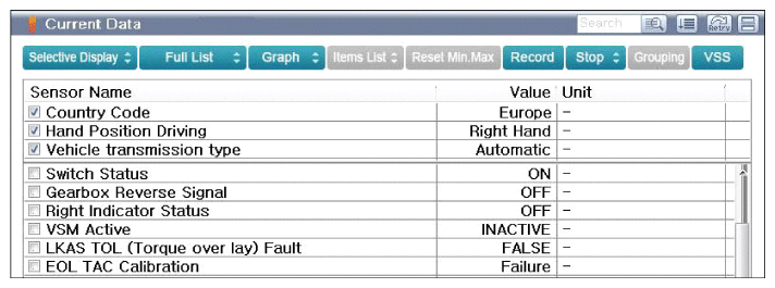 - Monitor "Country Code", "Left/Right hand drive", "Vehicle transmission type" and "Vehicle Model" parameters in "Current Data with KDS/GDS".