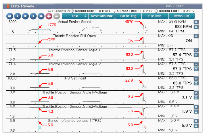 Home >> Kia >> 2017 >> Cadenza Technology >> Repair and Diagnosis >> Engine Performance >> System >> Engine Control System Diagnosis (2 Of 6) >> DTC P0121-00: Throttle Position Sensor 1 Signal Circuit Range/Performance >> DTC Inspection >> Monitor KDS/GDS Data