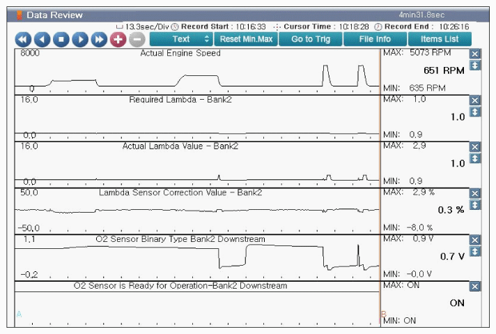 Home >> Kia >> 2017 >> Cadenza Technology >> Repair and Diagnosis >> Engine Performance >> System >> Engine Control System Diagnosis (2 Of 6) >> DTC P0159-00: O2 Sensor Circuit Slow Response (Bank 2/Sensor 2) >> DTC Inspection >> Monitor KDS/GDS Data