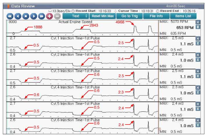 Home >> Kia >> 2017 >> Cadenza Technology >> Repair and Diagnosis >> Engine Performance >> System >> Engine Control System Diagnosis (3 Of 6) >> DTC P0200-00: Injector Circuit/Short >> DTC Inspection >> Monitor KDS/GDS Data