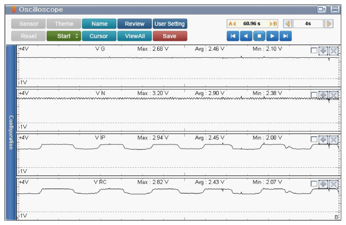 4. Measure signal waveform between Pin No. 1 (Nernst Voltage) terminal of HO2S (B1/S1) harness connector and chassis ground with VMI.
