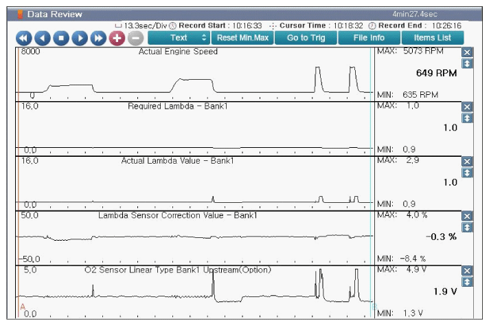 Home >> Kia >> 2017 >> Cadenza Technology >> Repair and Diagnosis >> Engine Performance >> System >> Engine Control System Diagnosis (6 Of 6) >> DTC P2251-00: O2 Sensor Reference Ground Circuit/Open (Bank 1 Sensor 1) >> DTC Inspection >> Monitor KDS/GDS Data