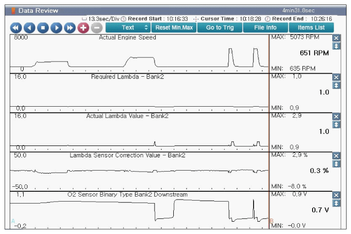 Fig 1: Scantool Display - Engine Idle After Warm Up (Approx 2000RPM, 3000RPM And 5000RPM)