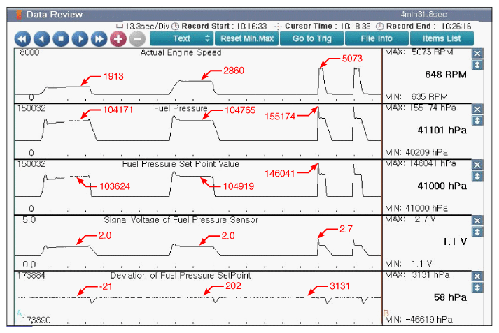Fig 1: Scantool Display - Engine Idle After Warm Up (Approx 2000RPM, 3000RPM And 5000RPM)
